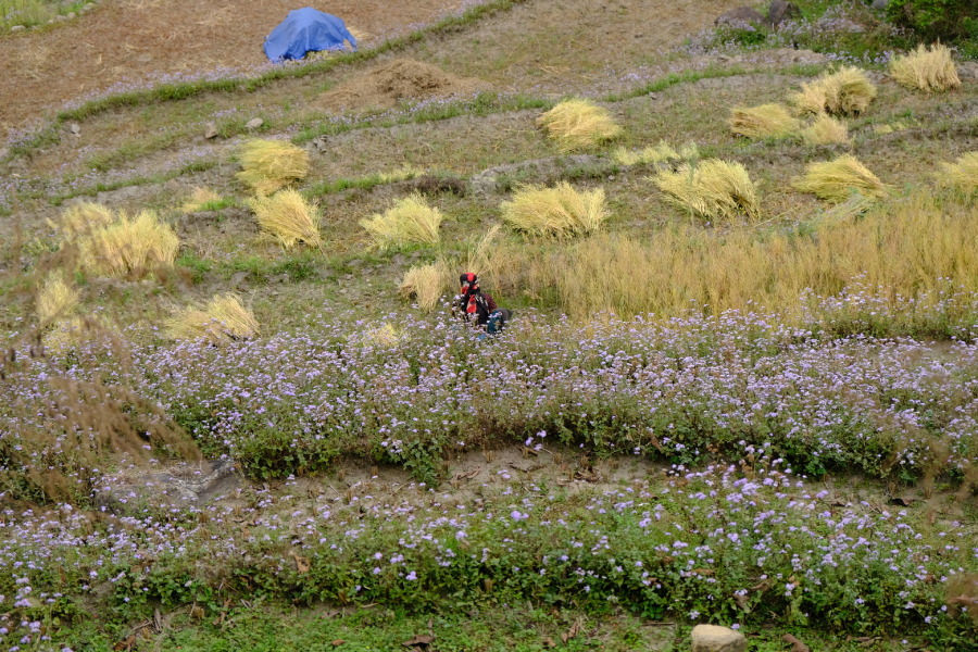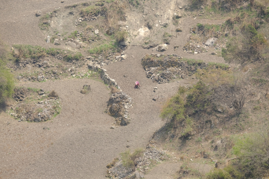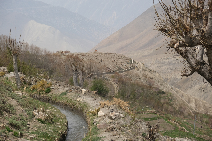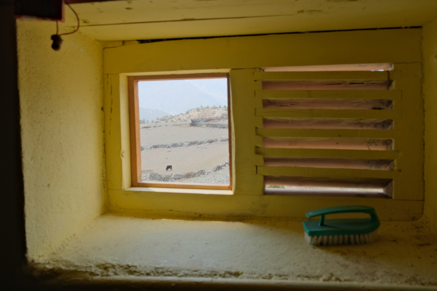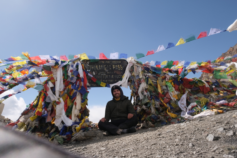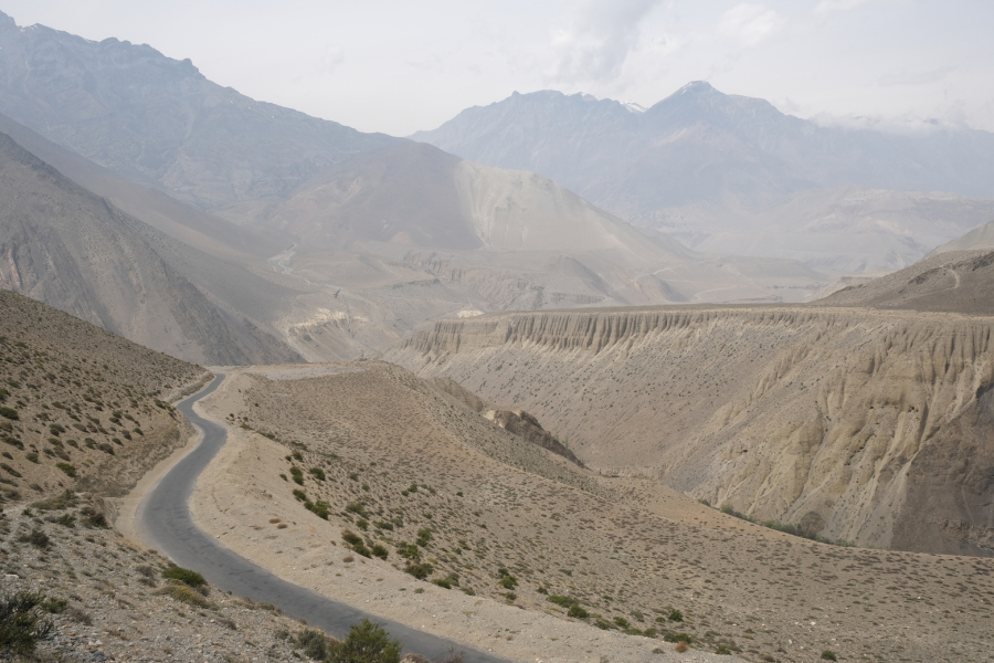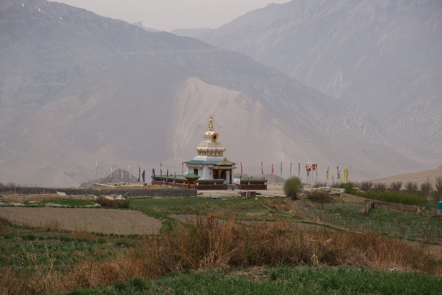 Zum Pass geht es einigermaßen stetig bergauf. Die Teehausdichte nimmt ab, Ortschaften werden noch kleiner und spärlicher. Ich gehe im bewährten Minimaltempo und komme gut gelaunt oben an. Dort trinke ich Tee mit viel Zucker. Im Teehäuschen läuft leicht rauschendes Radio mit nepalesischer Musik. Der Verkäufer Sanna ist so alt wie ich und 3 Monate am Stück hier. Danach wird er abgelöst und kann nach Hause zu Frau und zwei Kindern. Die Saison war Corona-bedingt noch schlecht, aber es geht jetzt metaphorisch bergauf. Vom Pass aus geht es physisch recht schnell bergab. Ich ziehe den Tag in die Länge und wandere bis zum Sonnenuntergang nach Muktinath.