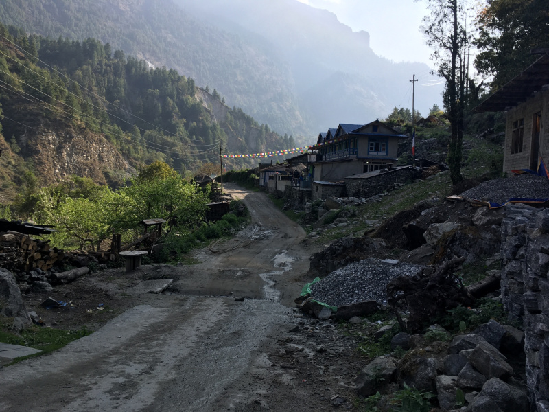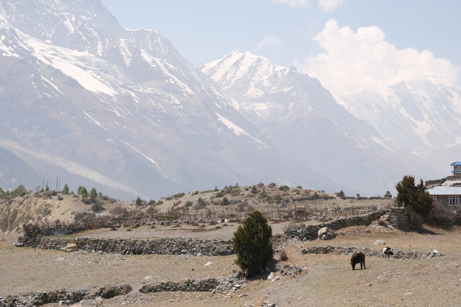 Manang ist ein größeres Dorf mit mehreren Geschäften, das für viele als Basisstation zum einigermäßen komfortablen Akklimatisieren herhält. Von hier aus kann man zu mehreren Tagestouren aufbrechen. Außerdem gibt es eine Weggabelung vom Hauptpfad. Wer es ernst meint, kann von hier aus zum noch höher gelegenen Tilichosee wandern, benötigt dafür aber mehr Aurüstung, Zeit und vor allem Können, als ich aufzubringen habe. Meine Begleitung und ich trennen uns hier nach einer Nacht im Gasthaus mit funktionierender warmer Dusche. Ich gehe weiter gen Thorang-La Pass.