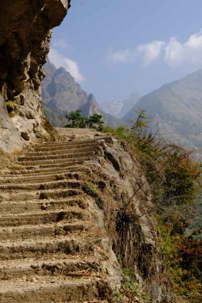 Es ist ratsam am Tag aktiv hoch zu steigen und zum Übernachten wieder etwas abzusteigen. Das regt den Prozess gut an und man kann Nachts trotzdem schlafen. Lokal hält sich die Ansicht, dass starke Knoblauchsuppe hilft. Diese wird, neben Dal Bhat natürlich, unsere tägliche Kost.