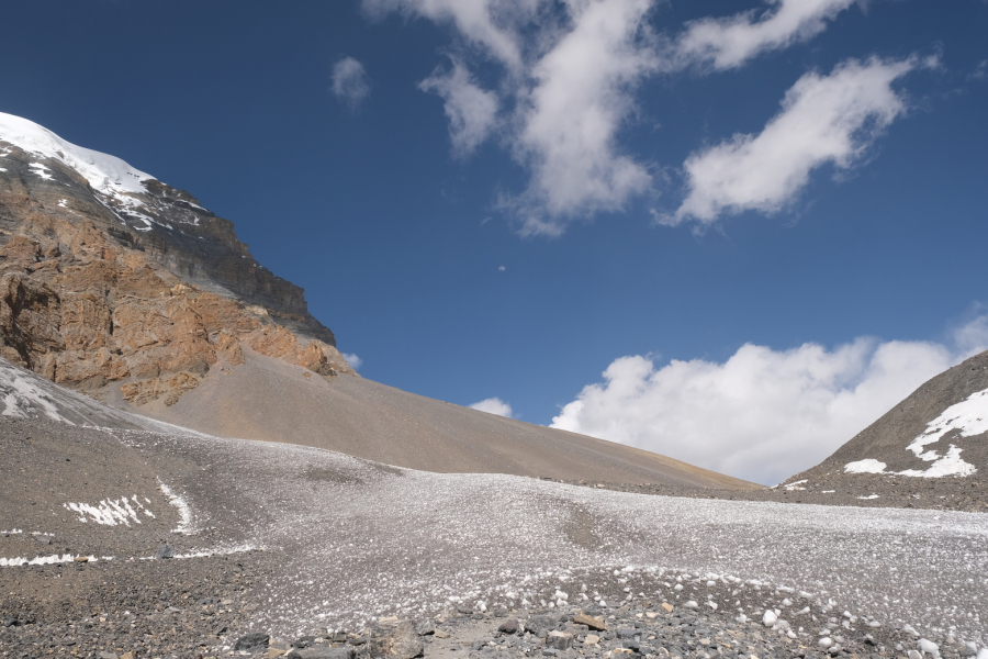 Wir entscheiden uns schon bevor wir überhaupt losfahren, einen Ausflug zum Ice Lake zu machen. Tagesausflüge werden wegen der Akklimatisierung empfohlen. Ein Trick beim Wandern in Höhe ist es, sehr langsam zu gehen, also wirklich langsam. So langsam, dass man trotz der dünnen Luft nie außer Atem kommt. Das ist gar nicht so einfach, weil man schon beim aufgeregten Sprechen manchmal bemerkt, dass die normale Atemfrequenz schlicht nicht ausreicht. Man vergisst es auch, wenn man in der Unterkunft schnell mal aufsteht und auf die Toilette geht. Als Faustregel beim Wandern hilft es, so kleine Schritte zu machen, dass nie eine Lücke zwischen den Füßen entsteht. Das wurde uns von einem regelmäßig hier Wandernden empfohlen. Der Aufstieg von 1.400 m zum Ice Lake ist recht steil und ich ziehe das Ameisentempo durch. Dadurch musste ich nicht pausieren und konnte am Ende feststellen, dass ich mit maximal 1 km/h Dauergeschwindigkeit alle auf dem Weg überholte. Mein Wanderpartner hat an diesem Tag leider zu viel Energie und geht schneller, kommt außer Atem und macht Pausen. Wir denken, dass er deswegen Kopfschmerzen bekommt und sich in den nächsten Tagen entscheidet, länger im Ort zu akklimatisieren, wofür ich nicht mehr genügend Pufferzeit habe. Der Tagesausflug hat sich trotzdem gelohnt und natürlich gehe ich im See schwimmen.