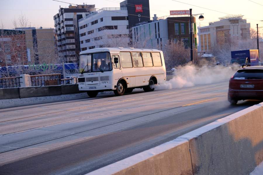 Erstens bestand die Wolke tatsächlich aus Wasserdampf und zweitens stammte sie von einem fließenden(!) Gewässer. Seit Helsinki hatte ich kein flüssiges Wasser mehr in der Draußenwelt erspäht. Ich habe also nachgeforscht. Die Angara speist sich aus dem Tiefenwasser des Baikal. Weil das auch im Winter flüssig bleibt, gibt es selbst im Winter noch einige Kilometer in denen es auch oberflächlich fließt. Der Temperaturunterschied zwischen Wasser und Luft beträgt gerne mal 30°C. Das 0°C heiße Wasser dampft also ordentlich. Später fließt die Angara übrigens in den Jenissei, wobei es andersrum eigentlich richtiger wäre, weil der Jenissei an der Stelle kleiner und kürzer ist.