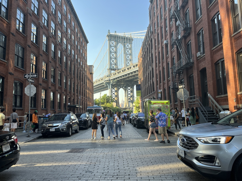 Ich wohne während meines Aufenthalts in Brooklyn und mag es dort ziemlich gern. Der Stadtteil ist jüdisch geprägt, insgesamt aber sehr bunt und hat trotz der Größe einen nachbarschaftlichen Charakter. Außerdem gefallen mir die umzäunten Sportplätze irgendwie. Über die Brooklyn Bridge kommt man zu Fuß nach Manhattan.