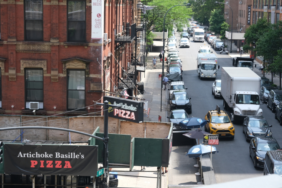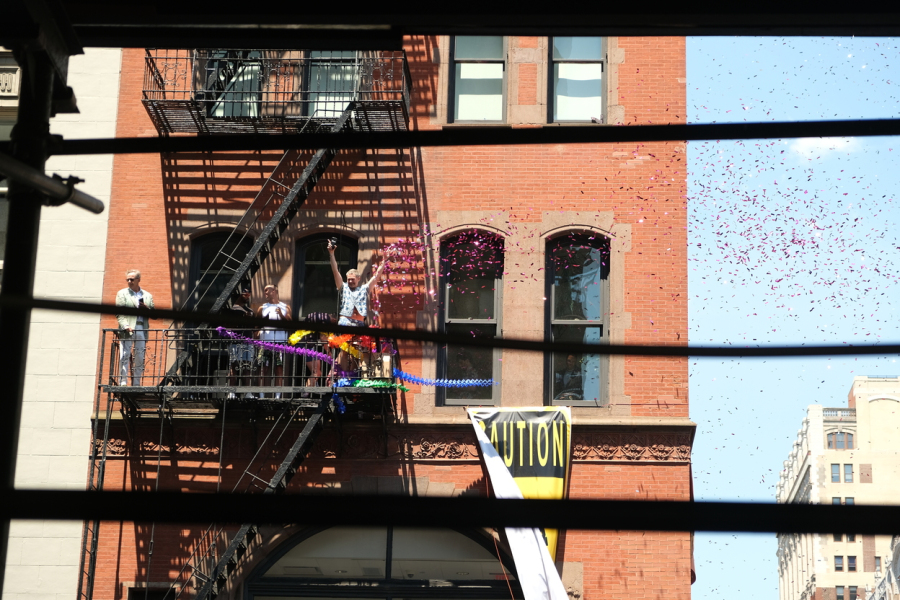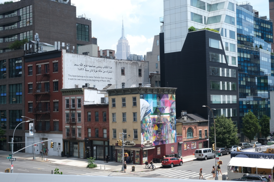 Nicht nur läuft hier Vielfalt ganz selbstverständlich durch die Straßen, sie wird aktiv gefeiert. Gleich zu meiner Ankunft ist Christopher Street Day. Ganze Straßenzüge sind voll mit Menschen – zum Anlass in Regenbogenfarben, zur Normalisierung oberkörperfrei, zur Feierlichkeit glitzernd und zur Musik tanzend unterwegs. Die Parade dauert mehrere Stunden und läuft anders ab als die typische Kreuzberger Demo. Die Straßen sind abgesperrt und man beobachtet den Demozug vom Rand aus. Wenn man die Straßenseite wechseln möchte, gibt es Schleusen, die von Polizei zwischen den Demowagen kurz geöffnet werden. Natürlich kann man überall Dollars gegen Regenbogenausrüstung tauschen und auch überall fliegt Konfetti. Nach dem Fest mache ich einen Spaziergang in Richtung Times Square. Die Touri-Dichte nimmt zu und hier und da mischt sich noch ein kommerziell eingesetzter Regenbogen ins Bild.