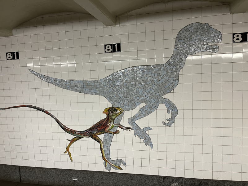 Schon vor meiner Anreise war mir klar, dass ich hier gern ins Naturkundemuseum gehen möchte. Das American Museum of Natural History ist eins der Art massiver Museen, in die man sehr oft gehen kann, ohne alles sehen zu können. Publikumswirksam beginnt die Ausstellung eigentlich schon in der U-Bahn. Die obligatorischen Schildchen sind museumsunüblich gar nicht langweilig, sondern haben spaßige Fakten oder erklären eine sich offensichtlich stellende Frage zum Ausstellungsstück. Im Raum angebrachte Kreise deuten auf die beschriebenen Merkmale hin und wie die Eremitage in Sankt Petersburg, versteht es das Museum seine Decken zu nutzen.