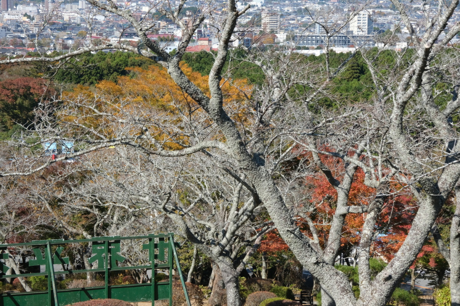 Zuerst fahre ich in Gotemba ein. Ich sehe grob überschlagen zwei Strategien Fuji zum Ausflugsziel zu machen. Man kann ihn besteigen, wofür ich weder Zeit noch passendes Reisegepäck dabei habe oder man kann einfach eine Bahn in die Nähe nehmen und nach einem guten Ausblick schauen. Ich entscheide mich also für letztere Option. Mit viel Geld könnte ich mich unter den anderen Touris nördlich vom Berg einmieten, wo man den Vulkanblick vor einem See findet. Wegen einer besseren Anbindung steige ich aber südöstlich des Vulkans in Gotemba aus, hoffe auf klare Sicht beim Sonnenaufgang und habe Glück. Ich scheine außerhalb der Saison im Park zu sitzen. Die Kirschen blühen nicht mehr und haben auch gerade ihr Laub verloren, worüber die nationale Laubvorhersage zuverlässig informiert. Jedenfalls habe ich die Parkbank den ganzen Vormittag für mich allein, um Postkarten zu schreiben.