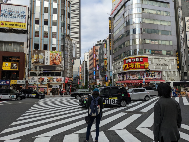 Ich vermute, für die wenigen verbliebenen Autos gibt es sehr teure Parkhäuser. Straßen und Fußwege werden jedenfalls vornehmlich als Verkehrsfläche genutzt. Recht häufig sieht man fußläufigen Transport von Gütern, ab und an mit Sackkarre. Regelmäßig sieht man Ordnungspersonal, das nur dafür da ist, den Fußverkehr zu regeln. Das Bild der vollen Kreuzung, die in alle Richtungen gleichzeitig zu Fuß überquert wird, kennen ja viele. Es gibt mehrere von diesen Kreuzungen, denn der Anblick ist eine logische Konsequenz der Einstellung zum öffentlichen Raum.