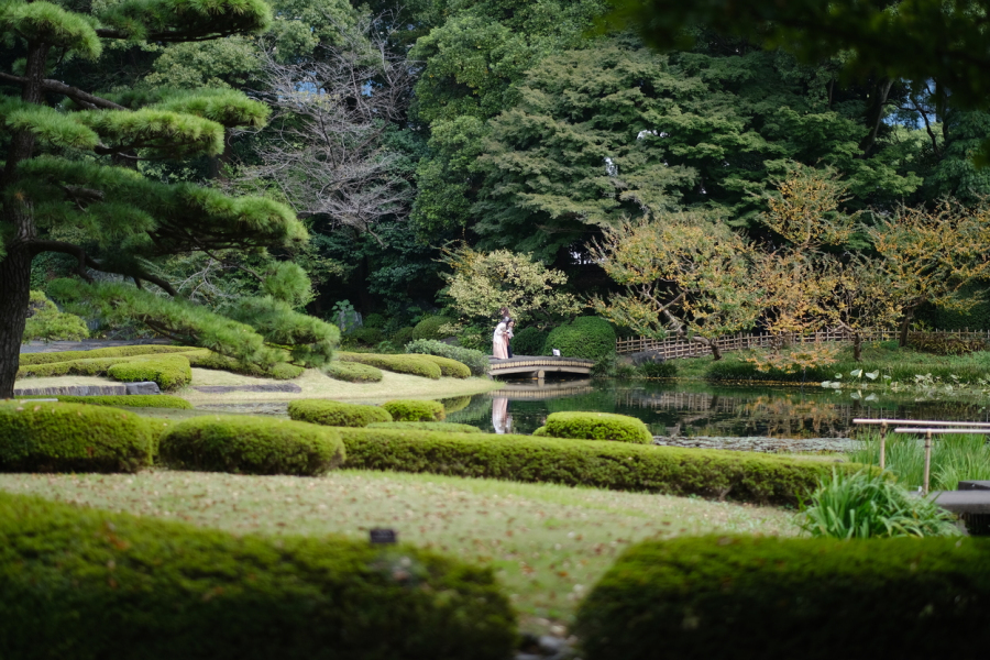 Mit meiner Körperlänge bin ich hier zwar ein wandelnder Leuchtturm, aber zumindest was den Fortbewegungsmodus angeht, mische ich mich unter die Menschen und erkunde wie gewohnt alles zu Fuß. An meinem ersten ganzen Tag lande ich beim Wandern im Garten des Kaisers, jedenfalls im öffentlichen Teil davon, denn der Palast wird tatsächlich noch bewohnt. Die gesamte Anlage ist von Wassergräben umgeben. Im Garten wird eine höchst gepflegte Rasenfläche durch kurvige Hauptwege aufgetrennt, sowie mit verschiedenen Bäumen und Hecken verziert. Seitenwege führen durch hügelige bambus-kiefer-mischwald-artige Abschnitte, die zusammen mit grauem Mauerwerk alles einrahmen. Natürlich gibt es eine Teichanlange mit Kois. Auffällig ist für mich ein Abschnitt mit alten Obstbaumsorten, die der Kaiser nach Eigenangaben zu Bildungszwecken für das Volk hat pflanzen lassen. Die Bäume hängen voll mit reifem Obst. Es gibt weder Zaun noch Hinweisschilder und Menschen laufen zwischen den Pflanzen hindurch ohne sich zu bedienen.