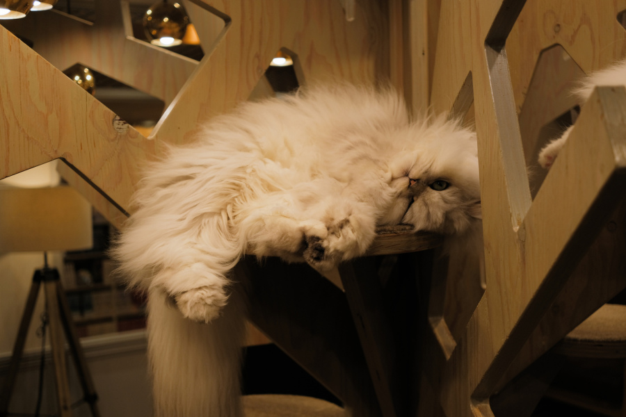 Ziemlich niedlich ist es auch im Katzencafé. Der Aufenthalt dort wird nach Verbleibedauer abgerechnet. Den Betrag entrichtet man vor der Ein- bzw. Ausgangsgangstür an einem Automaten. Dafür sind im Café alle Getränke, welche man sich aus weiteren Automaten ziehen kann, umsonst und der Tagespreisdeckel wird nach 2 Stunden erreicht. Drinnen gibt es eine gut sortierte Mangasammlung, Sofas, Sessel, Massagestühle, Brettspiele, gedimmtes Licht und natürlich Katzen. Ein Poster stellt letztere namentlich vor. Sie kommen aus dem Tierheim und stehen zur Adoption frei.